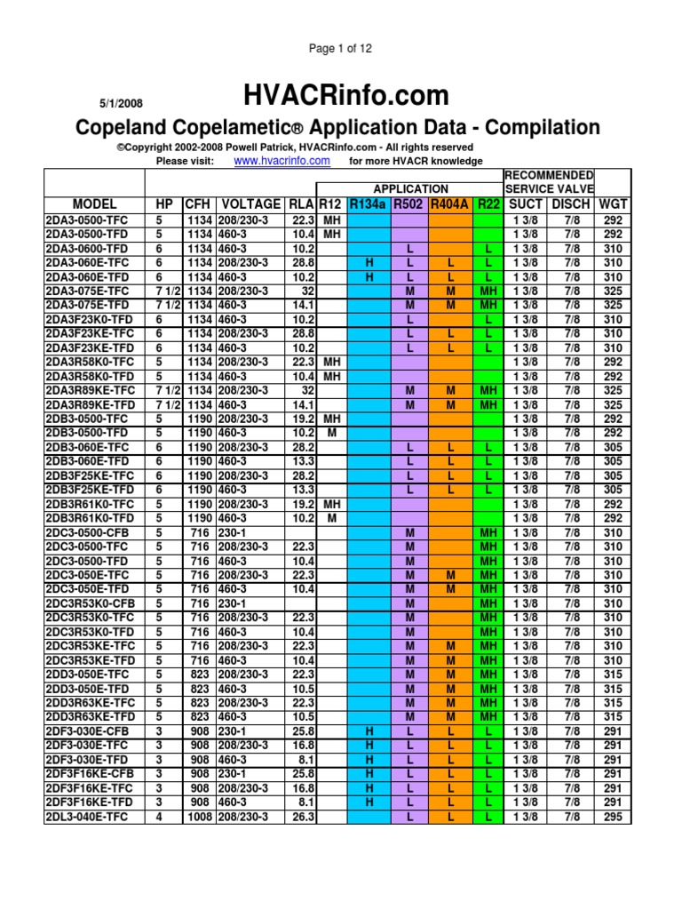 Copeland Compressor Capacitor Size Chart Copeland Compressor