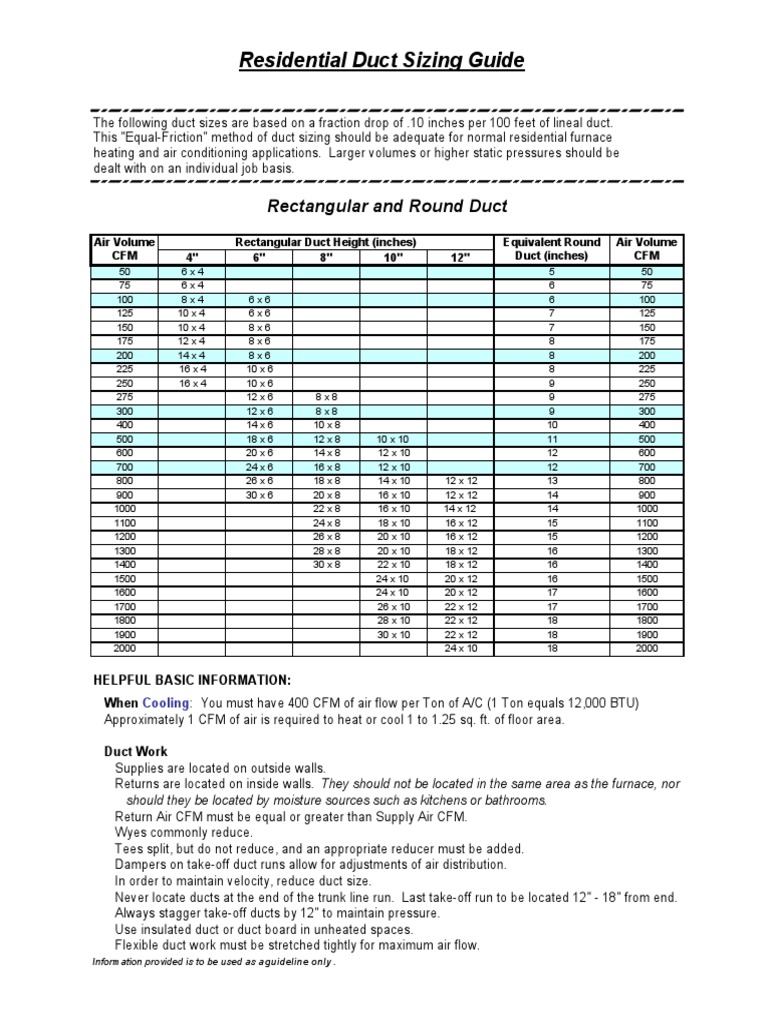 Cfm Duct Size Chart Draw Stunning Portraits