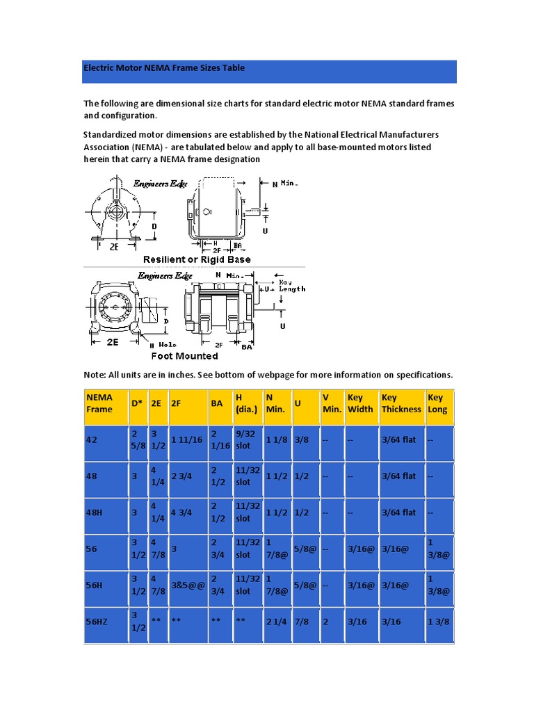 Electric Motor NEMA Frame Sizes Table PDF PDF Manufactured Goods Mechanical Engineering